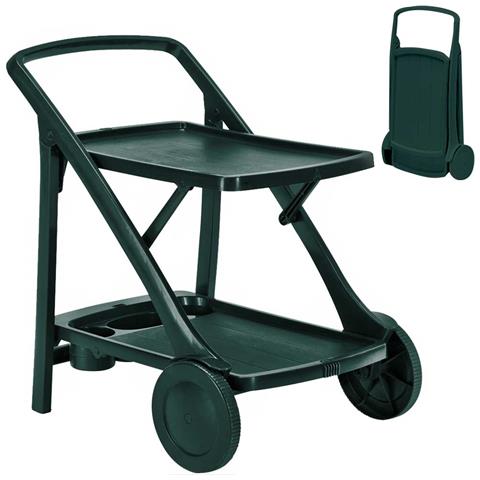 Carrello Cucina Portavivande Esterno in Resina con Vassoio Portabottiglie Verde