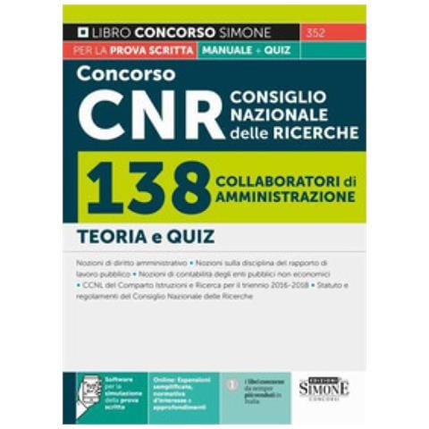 Concorso Cnr Consiglio Nazionale Delle Ricerche. 138 Collaboratori Di Amministrazione. Manuale+quiz. Con Software Di Simulazione