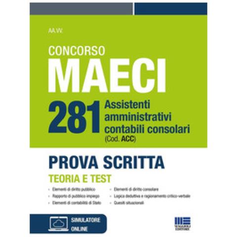 Il manuale presenta in maniera chiara, completa e approfondita tutti gli argomenti richiesti dal bando di concorso indetto dal maeci (ministero degli affari esteri e della cooperazione internazionale) per 281 assistenti amministrativi, contabili e consolari (cod. Acc). Il volume presenta, in particolare, le materie che saranno oggetto della prova scritta, ovvero: elementi di diritto pubblico. R...