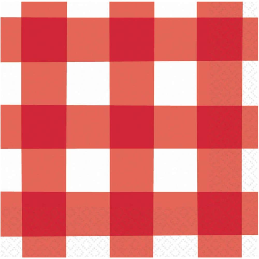 Questa confezione contiene 16 tovaglioli di carta. Sono a quadri rossi e bianchi. Misurano circa 16.5 x 16.5 cm. Perfetti per una decorazione rustica.
