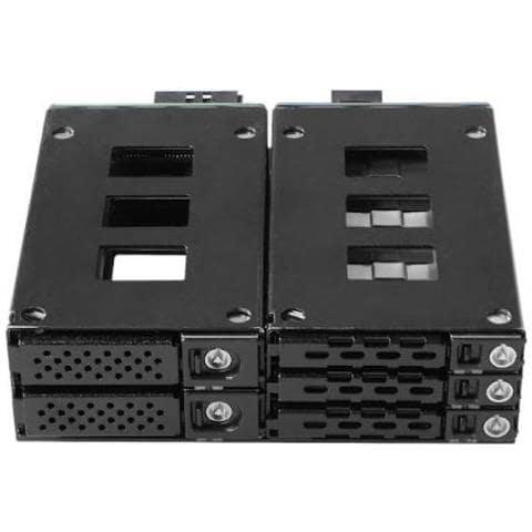 L'alloggiamento in alluminio di alta qualità può ospitare fino a due SSD NVMe U. 2 con un'altezza di installazione del disco rigido fino a 15 mm e tre SSD SATA /SAS da 6,4 cm (2,5") fino a un'altezza di installazione del disco rigido di 9,5 mm. Grazie al dispositivo antivibrazione dei vassoi, è garantito un funzionamento silenzioso, poiché le guide in acciaio inossidabile sono dotate di ammorti...