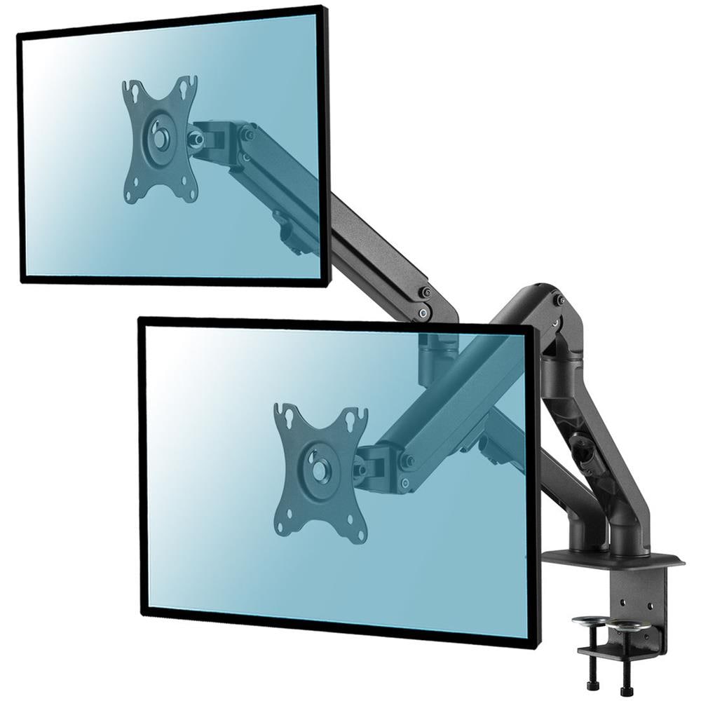 Supporto da scrivania per 2 monitor 17""-27"" questo braccio permette di spostare i monitor senza nessuno sforzo e dispone di un meccanismo a molla interna che mantiene fissi i monitor nella posizione scelta. Questo supporto risulta ideale per l'ufficio e la casa. supporto da scrivania per 2 monitor led 17""-27"" con molla, con fissaggio sia con morsetto che con vite passante. Compatbilità vesa...