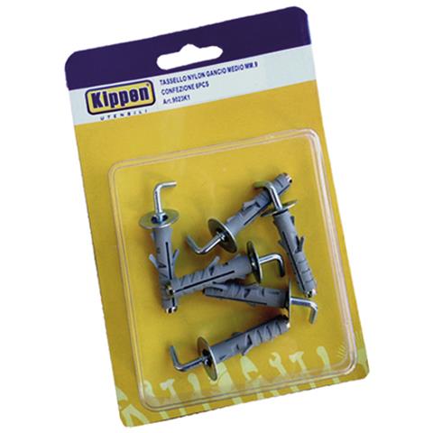 Confezione 6 Tasselli In Nylon Con Gancio Medio 9 Mm