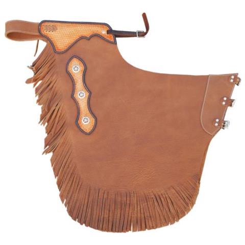 Chaps western chaps western modello rodeo in pelle liscia con frange e applicazioni in cuoio misure: xxs, xs, s, m, l, xl, xxl colore: marrone consigliamo di segnalarci la taglia di pantaloni generalmente indossata (es. 46, 48, 50) : dal momento che i chaps si indossano sopra l'abbigliamento sportivo, consigliamo sempre di segnalarci una taglia in più in modo da non riscontrare problemi di vest...