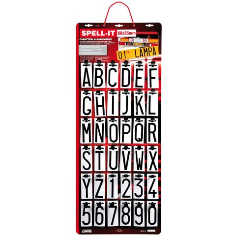 Caratteri alfanumerici adesivi 80x35 mm. Universale per rimorchi, semirimorchi e carrelli appendice. 36 caratteri per 10 pezzi.