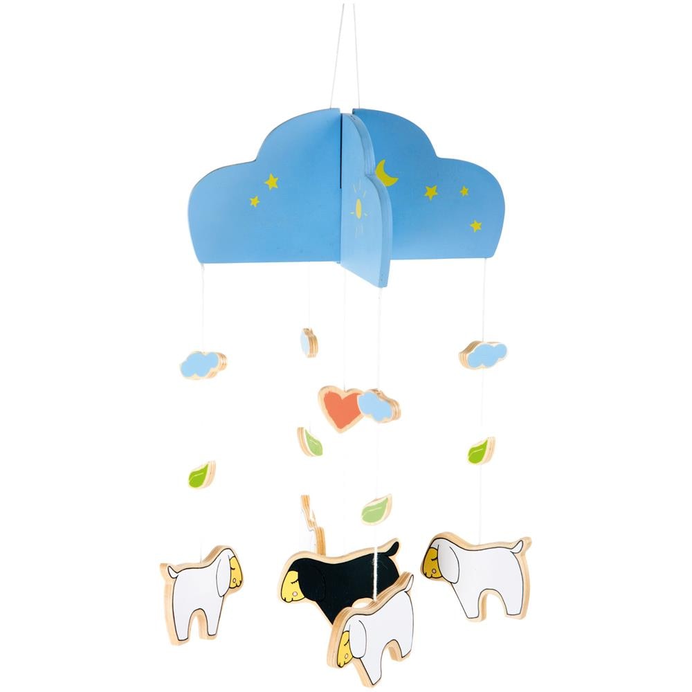 Giostrina pecorella ""lotta"". una giostrina di legno con l´amatissima pecorella lotta. Le pecorelle di legno incuriosiscono il bebè e lo animano ad allungarsi per poterle toccare con mano. In questo modo viene stimolata contemporaneamente la motricità di tutto il corpo. Il cielo stellato si lascia assemblare facilmente e la cordicella permette di appendere la giostrina ovunque.
