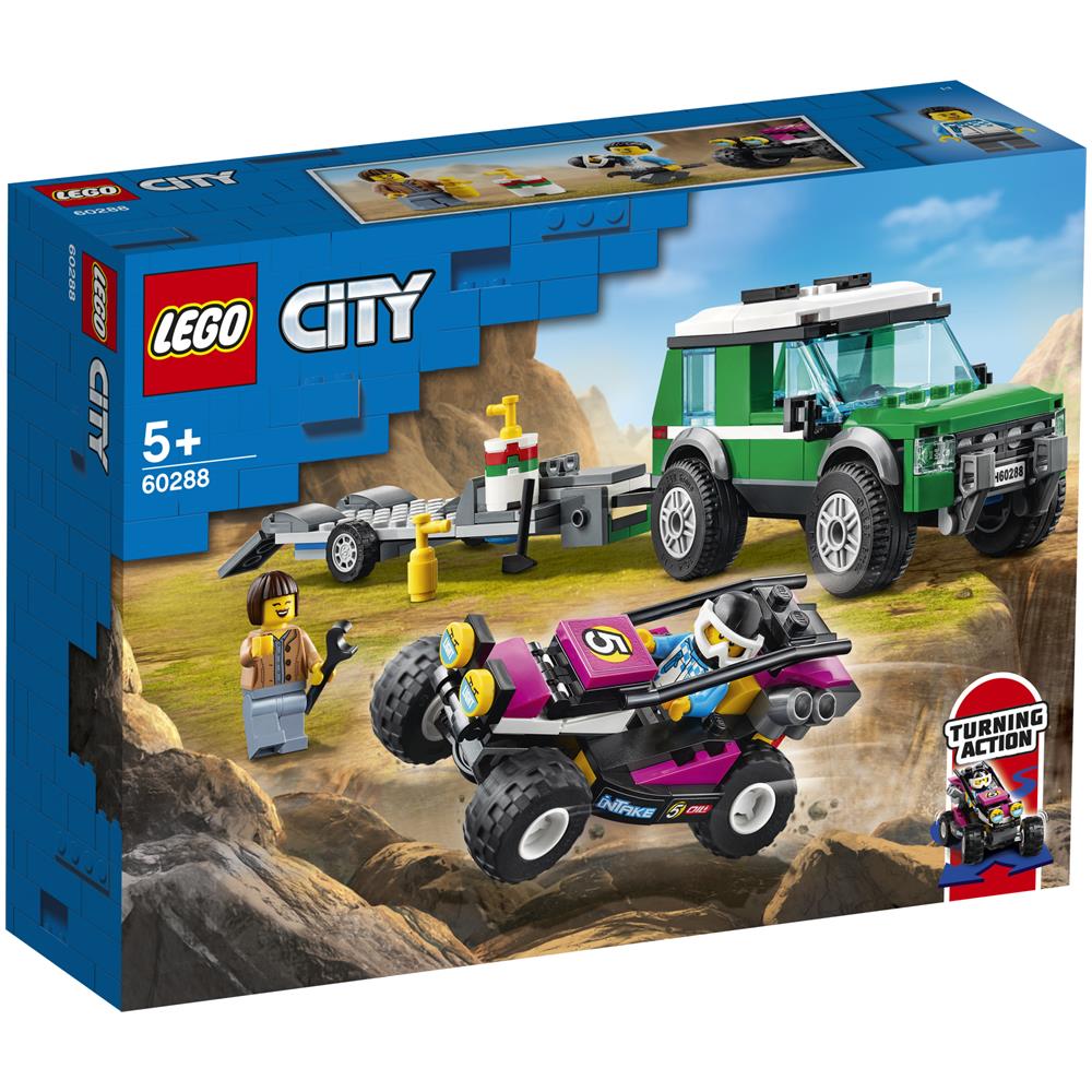 Tutto è fantastico nel playset del Trasportatore di buggy da corsa LEGO City (60288), contenente un fuoristrada SUV con un rimorchio per il trasporto del buggy da corsa Baja sterzabile. E con 2 minifigure di piloti da corsa, tutto è pronto per avventure di corsa ad alta velocità! Un fantastico set da costruzione per i bambini di 5+ anni. In questo set di gioco LEGO troverai una semplice guida a...