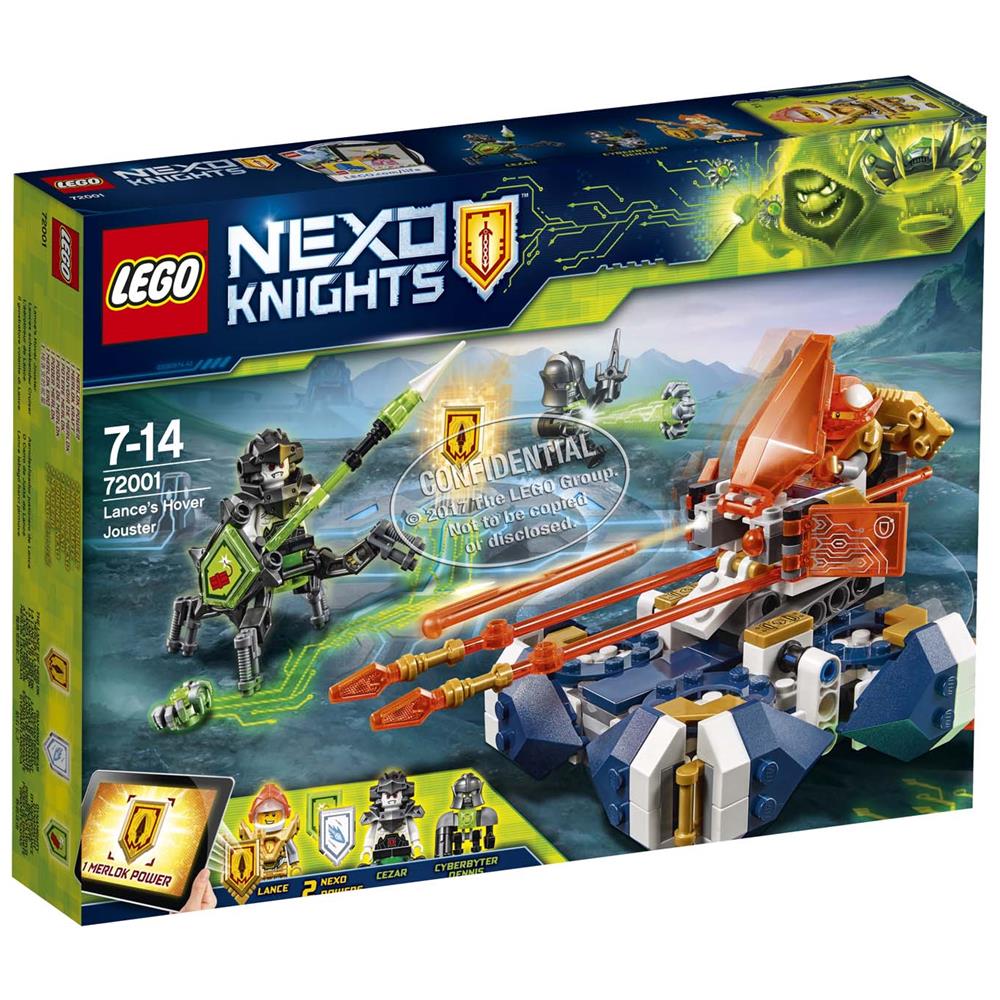 Aiuta Lance a sconfiggere Cezar e Dennis CyberByter con il suo Giostratore volante, dotato di cabina di pilotaggio per minifigure con 2 lance rosse trasparenti, 2 missili azionabili, 2 deflettori mobili, 2 porta-scudi e 4 ruote girevoli per una velocissima azione giostrante. Questo divertente giocattolo per i bambini include 3 scudi scansionabili, 2 minifigure e Dennis CyberByter.