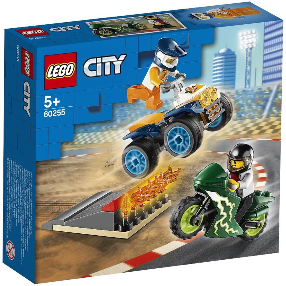 I mini stuntman eroici possono potranno organizzare grandi spettacoli con questo set da costruzione Team acrobatico LEGO® City (60255) ! Ci sono un fantastico ATV e motocicletta per acrobazie giocattolo, 2 minifigure di stuntman con casco e una rampa per i salti con fiamme. Questo giocattolo costruibile ha tutto ciò di cui bambini hanno bisogno per un gioco indipendente che entusiasmerà la foll...