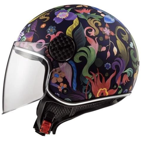 Casco cross ls2 sphere lux bloom deco - nero - light eran + schermo di ricambio per aviatore solare - interno ipoallergenico - imbottitura comfort.