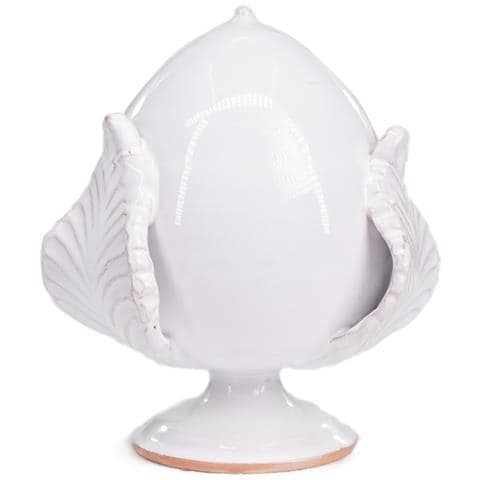Pumo Salentino In Ceramica Bianco, Chiuso Altezza 20 Cm, Decorazione Tipica Pugliese Bocciolo E 3 Foglie, Bomboniera Per Eventi, Feste, Cerimonie E Matrimonio, Soprammobile