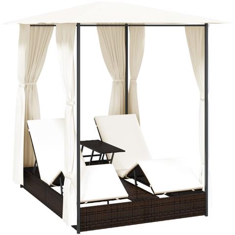 Lusso Casadino - Lettino Prendisole Doppio Con Tende In Polyrattan Marrone