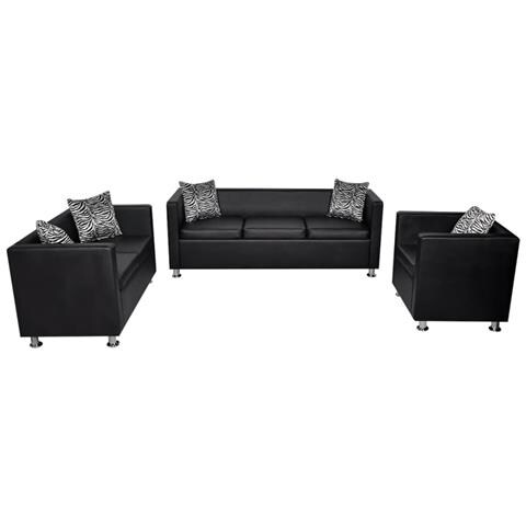 Lusso Casadino - Set Divani A 3 E A 2 Posti E Poltrona In Similpelle Nero