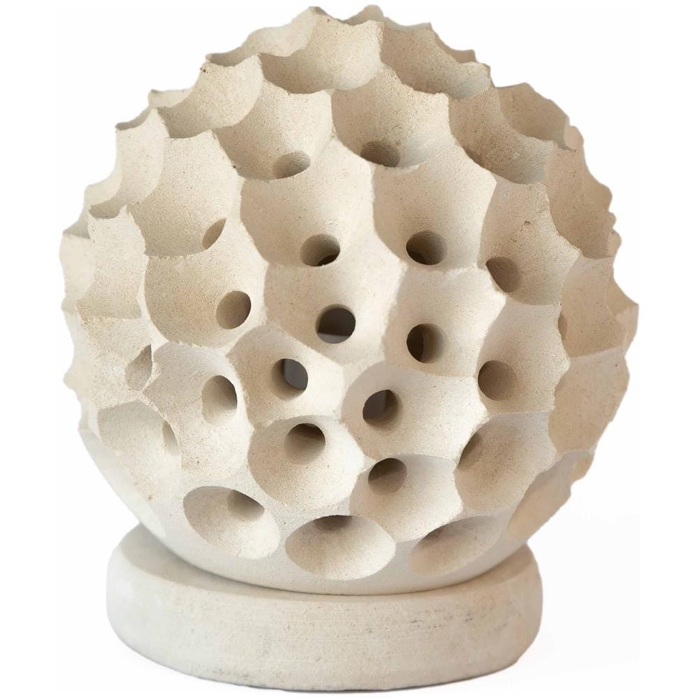 Lampada da terra o tavolo SFERA NIDO D'APE Piccola scultura decorazione in Pietra Leccese salentina misure 14 x 14 cm