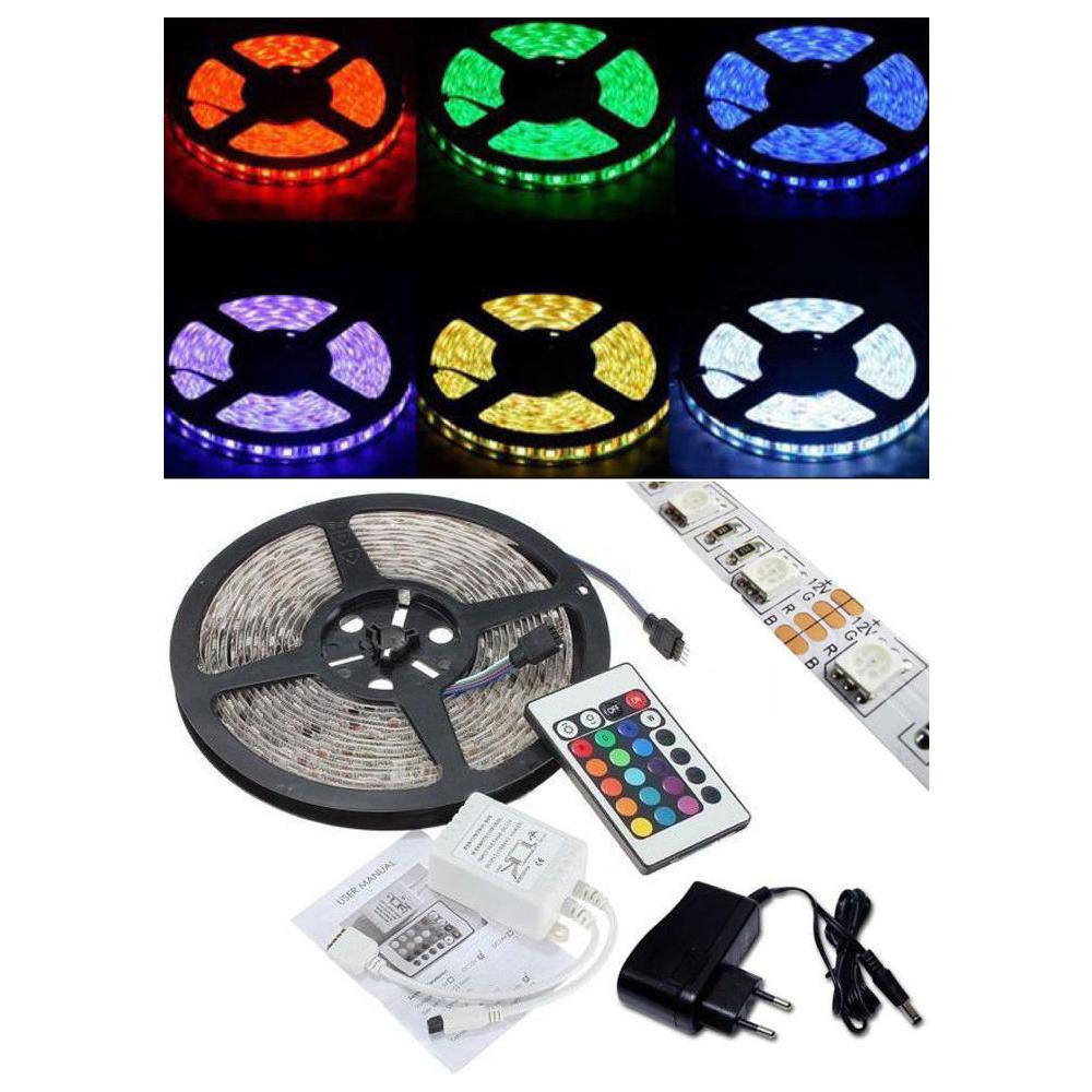 Striscia A Led Smd 5050 Rgb Ip65 Bobina 5 Metri Con Alimentatore E Telecomando