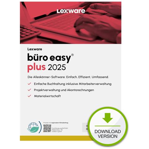 Lexware büro easy plus 2025 Download Jahresversion (365-Tage). Tipo: Contabilità, Tipo software: Download di software elettronico (ESD), Versione lingua: Tedesca. Sistema operativo Windows supportato: Windows 11 Enterprise x64, Windows 10, Windows 11 Home, Windows 10 Education, Windows 11 Pro,...
