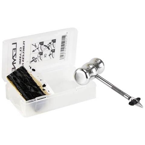 Un kit di riparazione pneumatici tubeless ultracompatto. custodia in polipropilene super comoda da portare in giro. Il kit include : un alesatore con impugnatura a t in alluminio lavorato e cinque vermicelli.