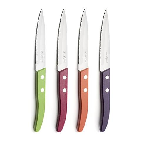 4 coltelli di office coltelli da cucina acciaio inox 13/0, spessore 2.0 mm manico legno tinteggiato, 4 colori misti office 21, 5 cm - lama 10, 5 cm.