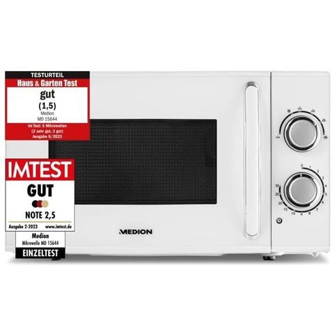 MEDION MD 15644. Posizionamento dell'apparecchio: Superficie piana, Tipo di prodotto: Solo microonde, Capacità interna: 17 L, Potenza Microonde: 700 W, Tipo di controllo: Manopola, Colore del prodotto: Bianco