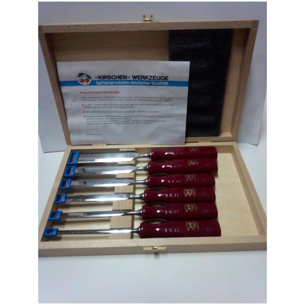 Scalpelli set 2 ciliege manico resina art. 1103 hk 6 scalpelli mm. 6/10/12/16/20/26 germany