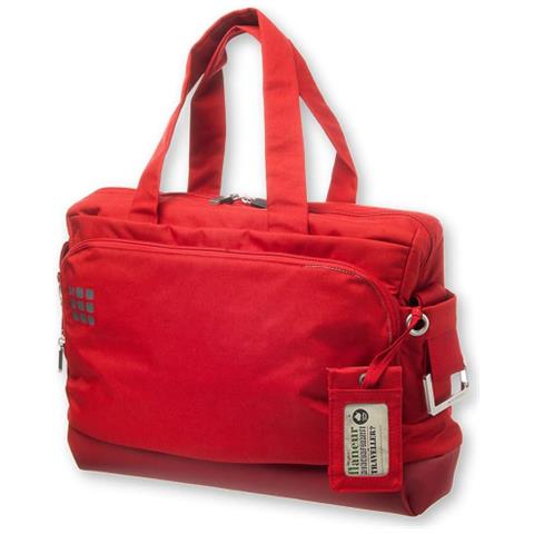 Moleskine's scarlet red mycloud curve cartella adatto per laptop e tablet fino a 15 pollici; dimensioni totali 40 x 32 x 11 cm. Esterno rosso scarlatto con fodera blu. Tracolla nascosta regolabile con fibbia (design registrato). Tasche anteriori e posteriori aperte con chiusura magnetica. marcamoleskine numero modelloet52bccf2 colorerosso scarlatto chiusuracerniera.