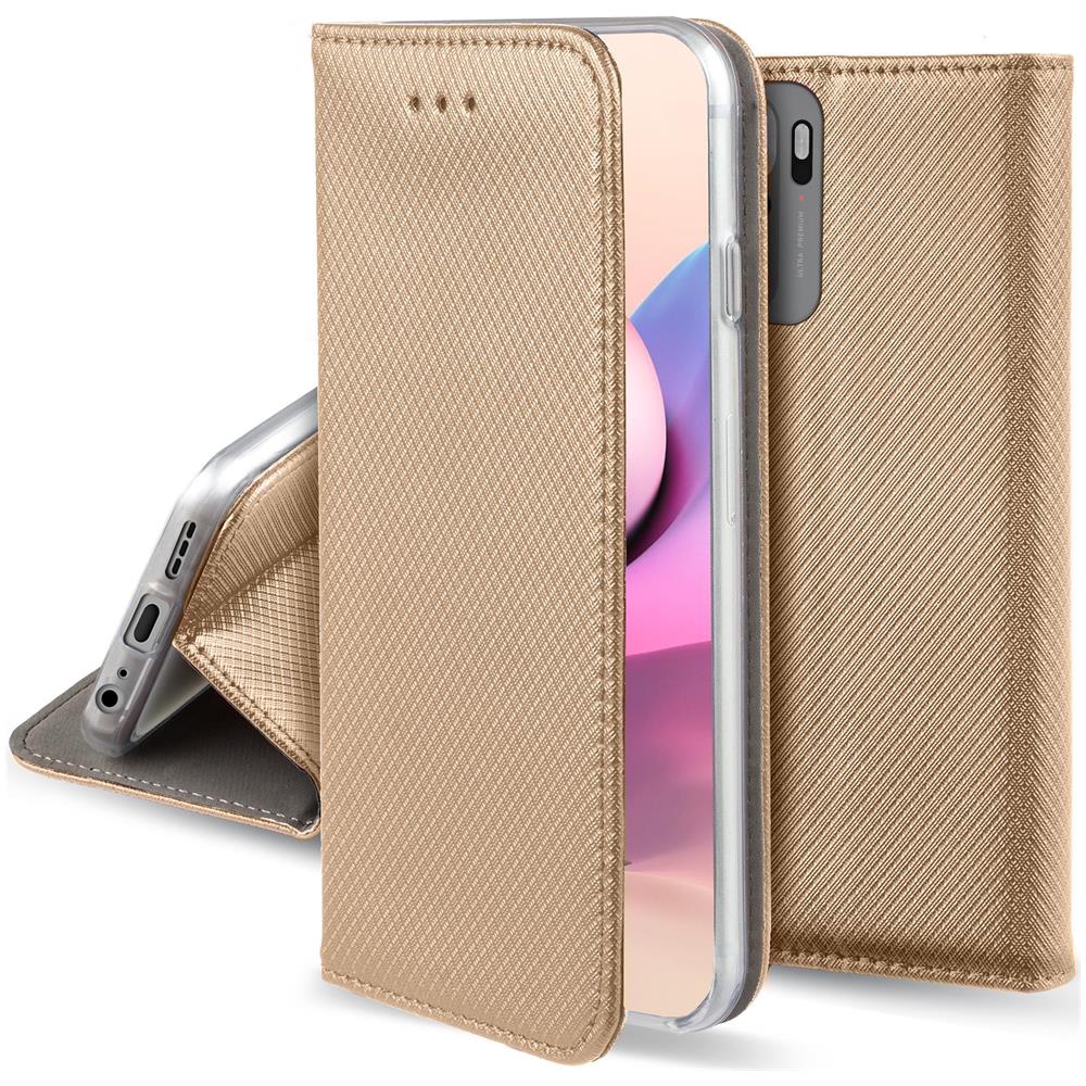 Cover Per Xiaomi Redmi Note 10 E Redmi Note 10s, Oro - Custodia A Libro Flip Smart Magnetica Con Appoggio E Porta Carte