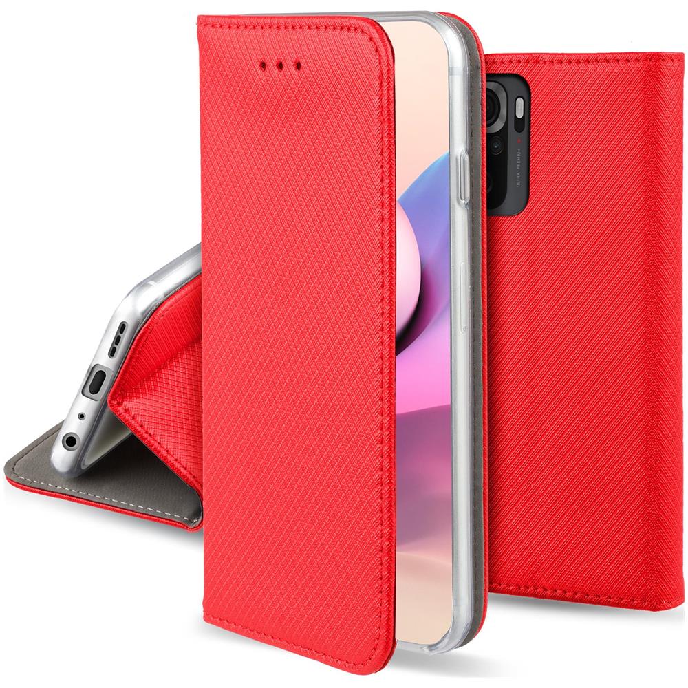 Cover Per Xiaomi Redmi Note 10 E Redmi Note 10s, Rosso - Custodia A Libro Flip Smart Magnetica Con Appoggio E Porta Carte