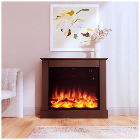 Caminetto Elettrico Camillo Xxl Marrone 75cm Legno Marrone 750w1500w Effetto Fiamma Led Realistico Termostato Automatico Modalita Solo Luce Telecomando Incluso Prodotto In Europa