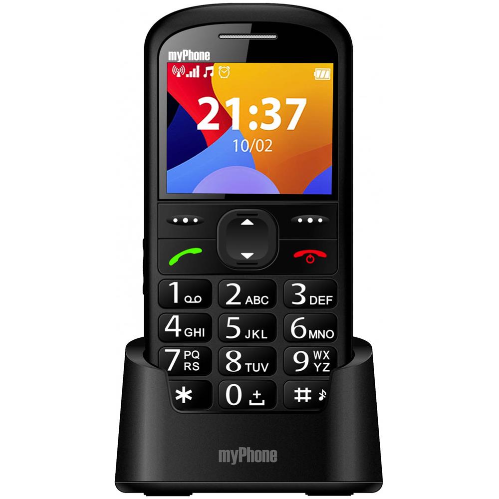 Telefono per senior myphone halo 2, con interfaccia semplificata e docking di ricarica. Tastiera con tasti grandi e ben distanziati. Funzione radio fm. Fotocamera con torcia. Caricatore da parete + cavo micro-usb in dotazione. Pulsante sos.