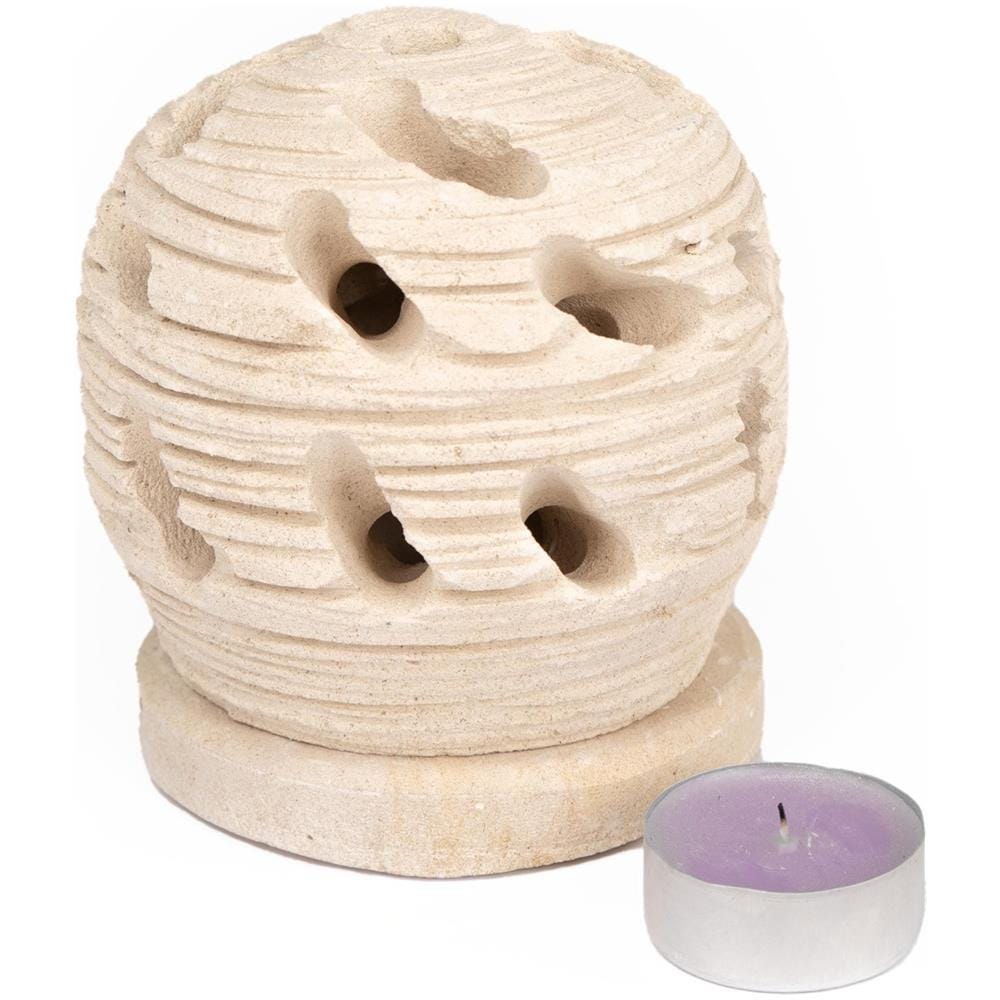 Mangiafumo, Porta Candela Lumino SPAZZOLATO decorazione bomboniera in Pietra Leccese salentina 11 x 9,5 cm