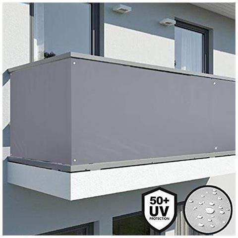 Bakaji Telo Copertura Frangivista Frangivento Per Ringhiera Protezione Balcone Dimensione 600 X 90 Cm In Tessuto Pvc Aggancio Ad Occhielli Corda 24mt Inclusa (grigio Chiaro)
