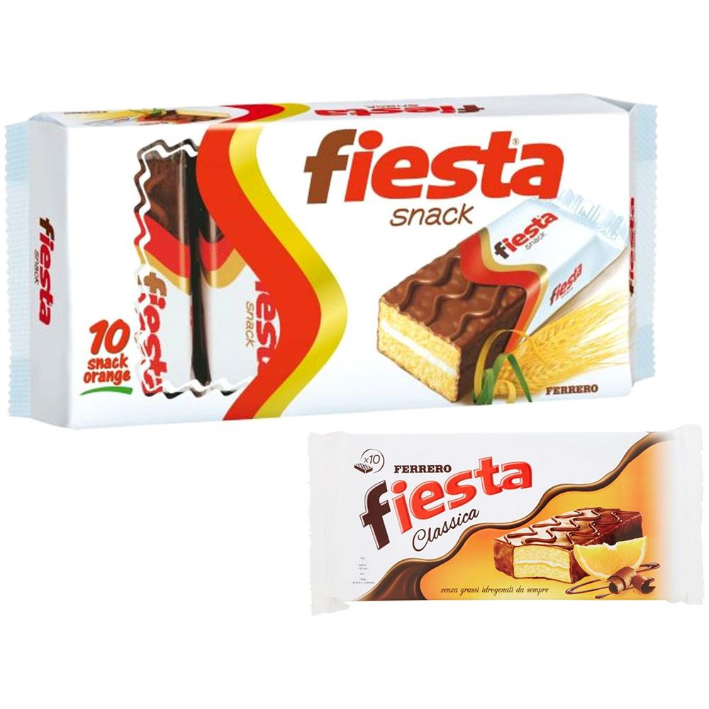 Soffice pan di spagna, delicato aroma all’arancio e una golosa copertura al cacao. fiesta, uno spettacolo di gusto che ti riaccende! confezione da 7 pack da 10 merendine da 36g ingrendienti: zucchero, grassi vegetali non idrogenati (palma, karité, sal), farina di frumento (13,5%), sciroppo di glucosio-fruttosio, liquore 8,5% (vino liquoroso, alcool, zucchero, aromi), , uova (7%), scorze d...