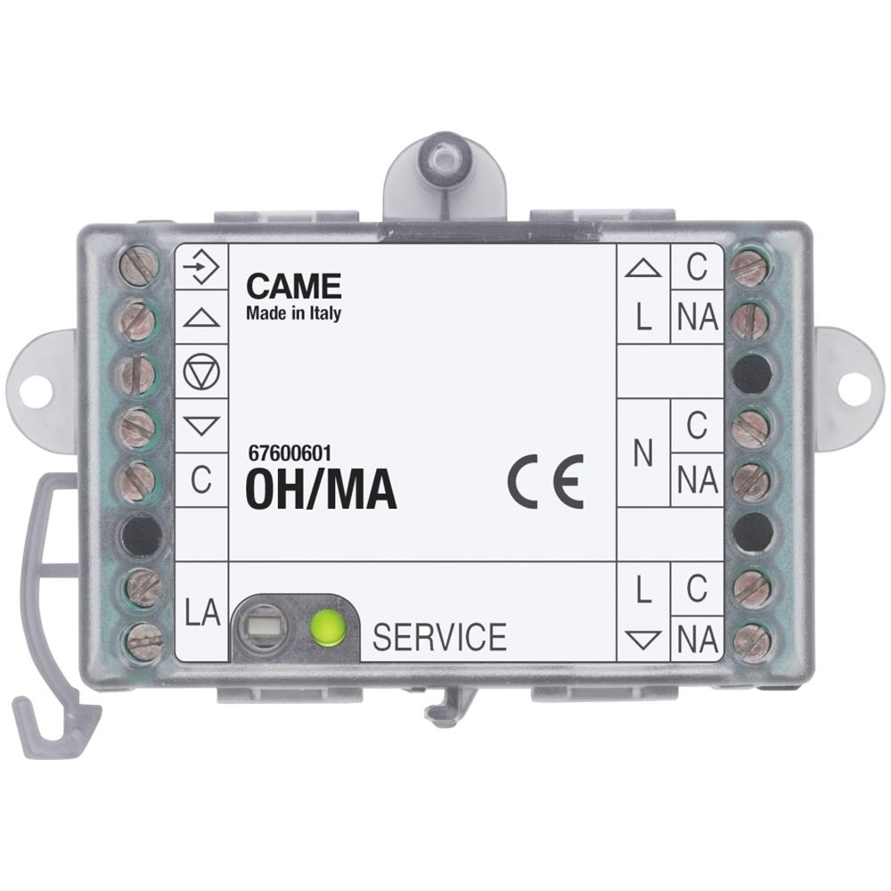 Camesku: 67600601ean: 8004487064359mod.: oh /madescrizione prodotto came :dispone di 3 uscite a relè per il controllo di dispositivi motorizzati e di 3 ingressi per il comando locale delle relative uscite (su, giù, stop). Il contenitore permette l'installazione da quadro su guida din o da incasso su fondo scatola.