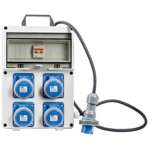 Realizzato in termoplastico per migliore rispondenza agli urti, escursioni termiche e raggi ultravioletti. Indicato nei cantieri di lavoro per la messa in funzione di attrezzature professionali. Con interruttore differenziale magnetotermico. Cavo in gomma: mt. 2 - 3x2,5 h07rn-f. Spina: 2p + t 16a - 230v. Prese: 4x2p + t 16a 230v. Protezione ip67.. Potenza max. 3 kw + pulsante emerg.. inteso per...