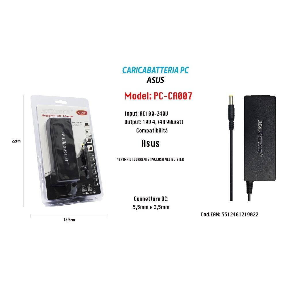 Caricabatteria Pc Asus Alimentatore Batteria Ricambio 19v 4.74a 90w Maxtech Pc-ca007