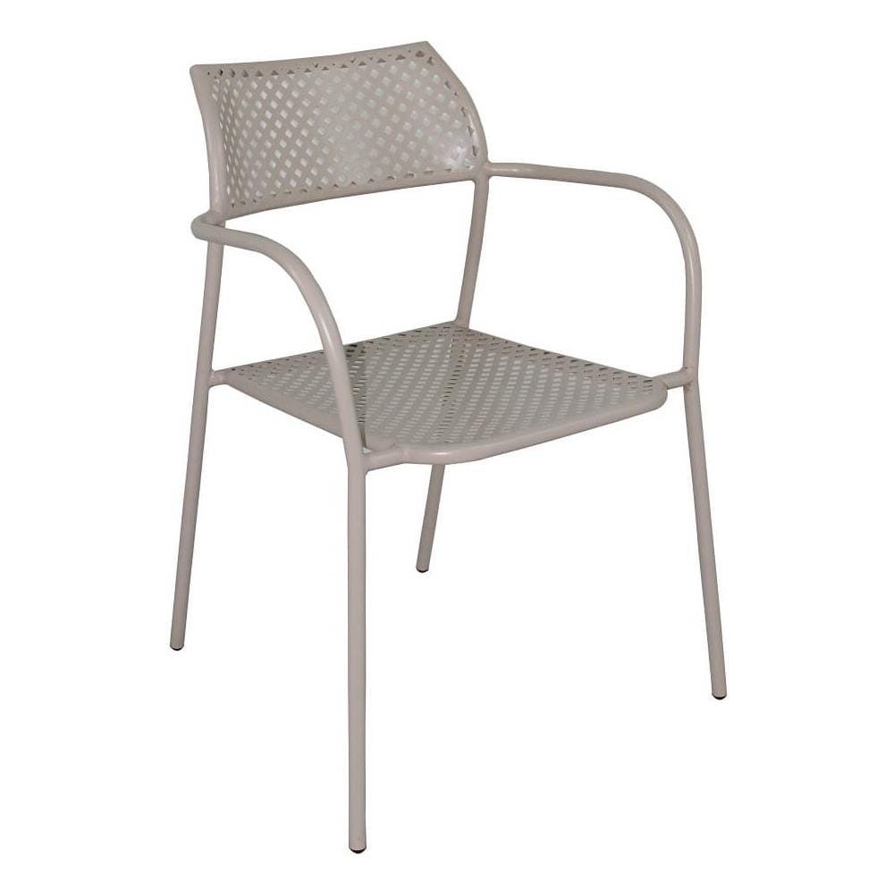 Avim è una poltrona da giardino dallo stile classico.e' realizzata in acciaio verniciato color tortora, la poltrona è impilabile così da occupare meno spazio dopo l'utilizzo.