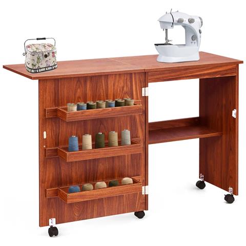 Mobiletto Per Macchina Da Cucire Tavolo Cucito Pieghevole Multiuso Legno Ciliegio
