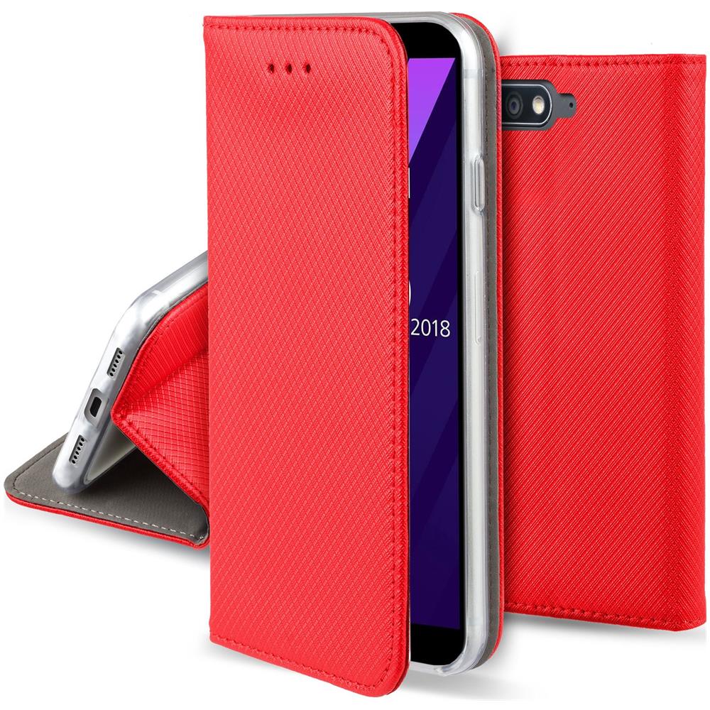 Cover Per Huawei Y6 2018, Rosso - Custodia A Libro Flip Smart Magnetica Con Appoggio E Porta Carte