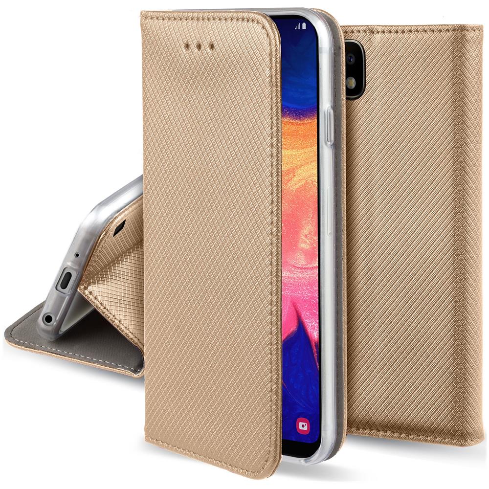 Cover Per Samsung A10, Oro - Custodia A Libro Flip Smart Magnetica Con Appoggio E Porta Carte