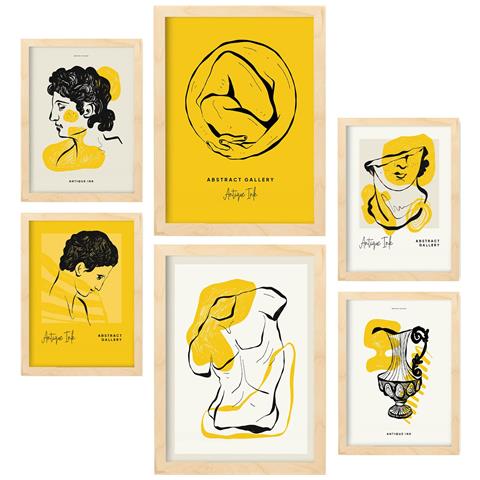 Set Di 6 Stampe Abbraccia Le Stampe Ispirate Alla Mitologia Greca Per L'interior Design In Inchiostro Nero A3 & A4 Telaio In Legno Chiaro