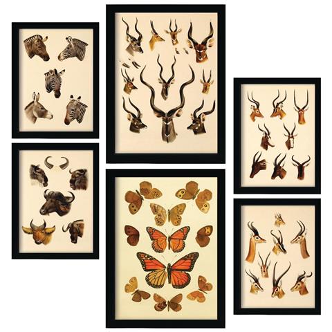 Set Di 6 Stampe Animali In Stampe Vintage, Dipinti Decorativi Estetici Per Il Tuo Soggiorno, Camera Da Letto, Casa A3 & A4 Cornice Bianca