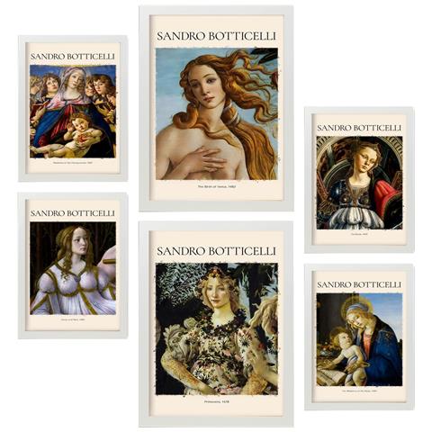 Set Di 6 Stampe Collezione Di Opere D'arte Di Sandro Boticelli Quadri Decorativi Per Il Tuo Soggiorno Stampe Artistiche Da Parete Per La Casa A3 & A4 Cornice Bianca