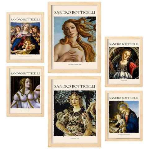 Set Di 6 Stampe Collezione Di Opere D'arte Di Sandro Boticelli Quadri Decorativi Per La Tua Casa Stampe Artistiche Da Parete A3 & A4 Telaio In Legno Chiaro