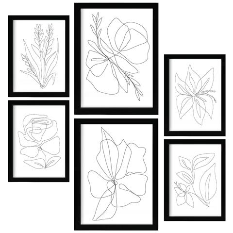 Set Di 6 Stampe Cornice Floreale 1 In Fiore Dipinti Decorativi Estetici Astratti Per Il Tuo Soggiorno Di Casa A3 & A4 Cornice Nera