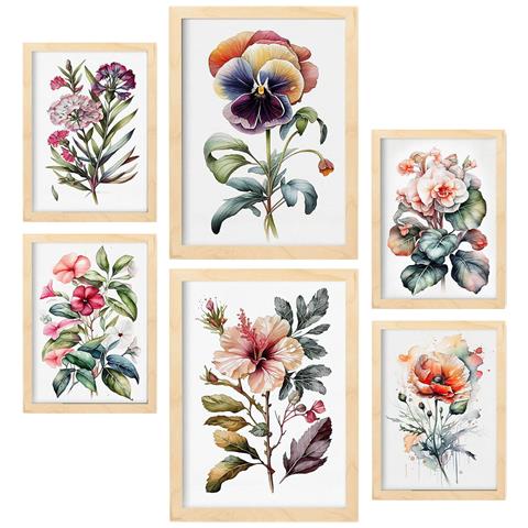 Set Di 6 Stampe Dark Flowers Stampe Naturalistiche E Botaniche A Colori Con Motivi Floreali Su Sfondi Bianchi Puri A3 & A4 Telaio In Legno Chiaro