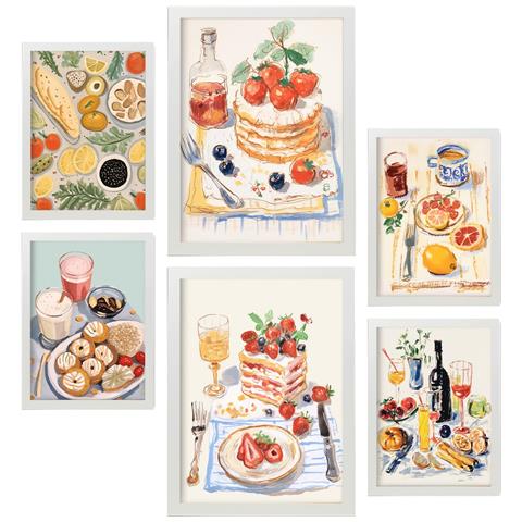 Set Di 6 Stampe Dessert In Foodies Dipinti Decorativi Estetici Per Il Tuo Soggiorno, Camera Da Letto, Casa A3 & A4 Cornice Bianca