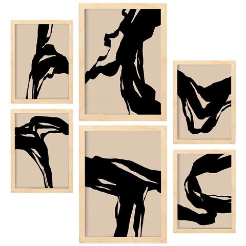 Set Di 6 Stampe Dipinti Decorativi Estetici Astratti Per Il Tuo Soggiorno, Camera Da Letto O Casa A3 & A4 Telaio In Legno Chiaro