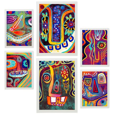 Set Di 6 Stampe Dipinti Decorativi Estetici Con Caratteri Gotici E Astratti Colorati Per Il Tuo Soggiorno, Camera Da Letto E Casa A3 & A4 Cornice Bianca