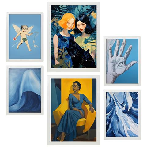 Set Di 6 Stampe Dipinti Decorativi Estetici In Stile Versatile E Blu Calmo Per Il Tuo Soggiorno, Camera Da Letto E Casa A3 & A4 Cornice Bianca