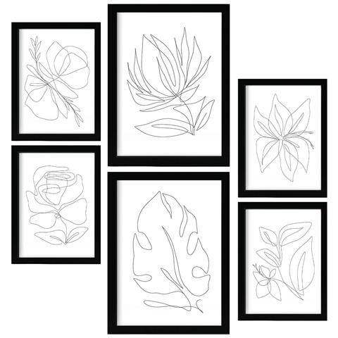 Set Di 6 Stampe Fairer Fiore In Flower Dipinti Decorativi Estetici Astratti Per Il Tuo Soggiorno, Camera Da Letto, Casa A3 & A4 Cornice Nera